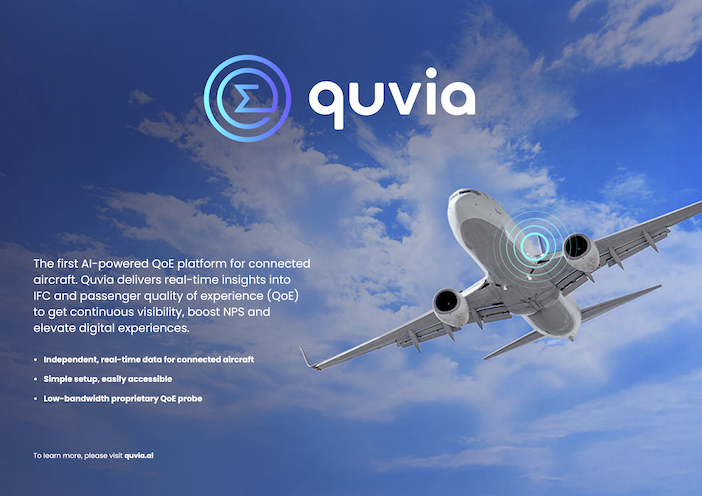 Quvia says it has developed the first AI-powered Quality of Experience (QoE) platform for commercial aircraft, which creates the backbone for future in-flight digital experiences. Quvia is a Series A startup seat up in 2023 and headquartered in the greater Miami region.