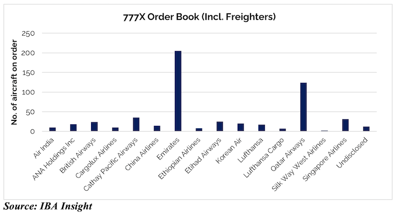While Airbus has benefited from the continued delays in the certification of the 777X, with its A350-1000 currently the only new-generation large widebody aircraft in production, Boeing retains a strong order book for the 777X.