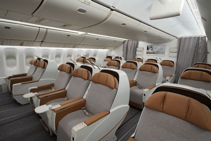 For the interior, 400 square metres of new carpet was installed, and all seats were refurbished (four in first class, 35 in business class, and 306 in economy class).