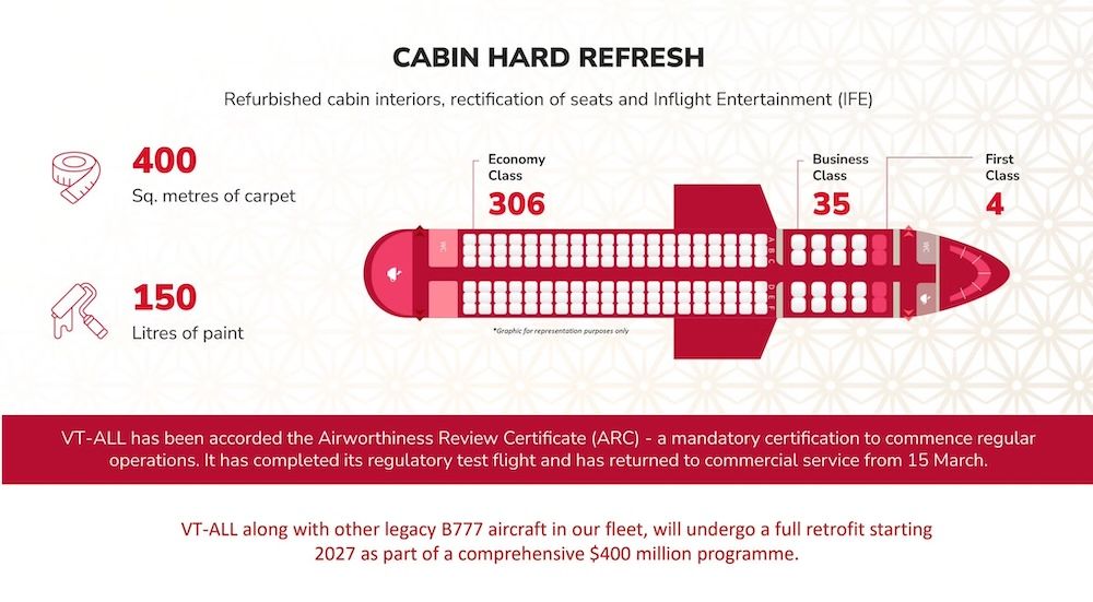 With the return of VT‑ALL, the Boeing 777‑300ER which is the last of the 30 grounded aircraft, the final chapter of this massive US$400 million revival effort is now complete. In the next phase, VT-ALL and the other B777 aircraft in the Air India fleet will undergo a full cabin interior retrofit, starting in 2027, and will be painted in the airline’s new livery.